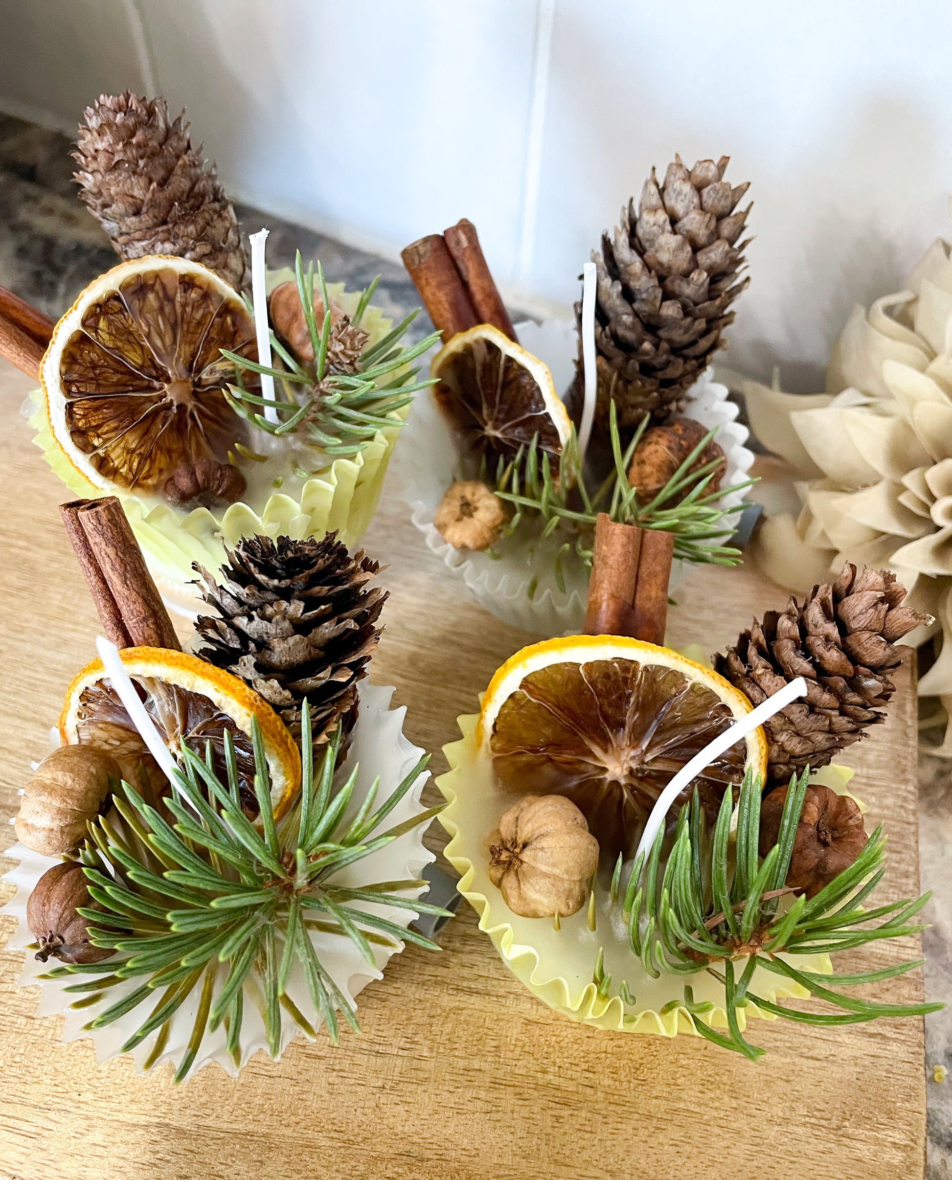 Made from all natural beeswax, cinnamon sticks, fruit slices, paper and foraged nature items. These super cute fire starters will make starting your campfire or bonfire a breeze. Drop into your firepit, light and wait for your logs to catch fire. An easy and safe way to light your fires. Comes in a set of four.